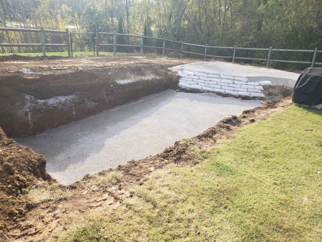 Amazing, isn’t it? We installed a fiberglass pool for these homeowners in the ground in less than 11 days! Although we’re not quite done yet, take a look at our progress photos.